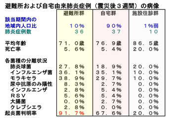 ・避難所からの肺炎発症は高率だったが、予後は良好だった。