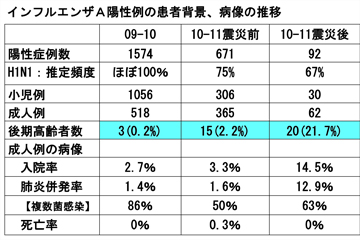 震災後の当地域における感染症発症状況をまとめると次のようになります。