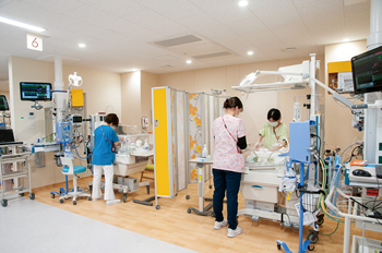 周産期医療に関しては、これまで鹿児島県地域周産期母子医療センターとして、鹿児島市立病院が超急性期を、その後を同病院が担当という役割分担をしてきた。新病院ではNICUを9床、GCUを12床に増やして、その役割をさらに強化。加えて新生児フォローアップセンターを新設し、鹿児島県はもとより、県外のNICU退院後の早産児などを受け入れ、フォーローアップ健診やリハビリテーション、発達検査などを実施している。