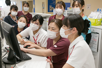 「当院の職員数は1000名を超え、常勤医師も100名以上います。それに対して、研修医は毎年8名と少し絞っています。当院では複数診療科の合同カンファレンスが日常的に行われ、各診療科の垣根がありません。研修医はいろいろな診療科の医師と接することができ、多面的な勉強ができる体制になっています。臨床が好きで救急をはじめ多くの経験を積みたいという志向を持つ研修医には最適の施設と自負しています。新病院になって県外から見学に訪れる医学生が目に見えて増えています」と濱崎院長は確かな手ごたえを感じている。