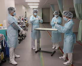 感染拡大につれ、昼夜問わず発熱外来に多数の患者が押し寄せた。「医療部や看護部だけでなく、事務スタッフも検温を手伝うなど、全職員の協力のお陰で院内感染を起こすこともなく、乗り越えることができました」と眞野氏。また、今後については「海外との往来が再開されると、新興感染症がいつ発生するかわかりません。それに備えて日ごろから訓練しておくことをお勧めします」とアドバイスする。